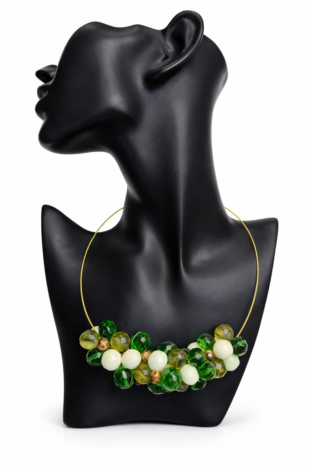 Výrazný náhrdelník ze skleněných korálků na lanku